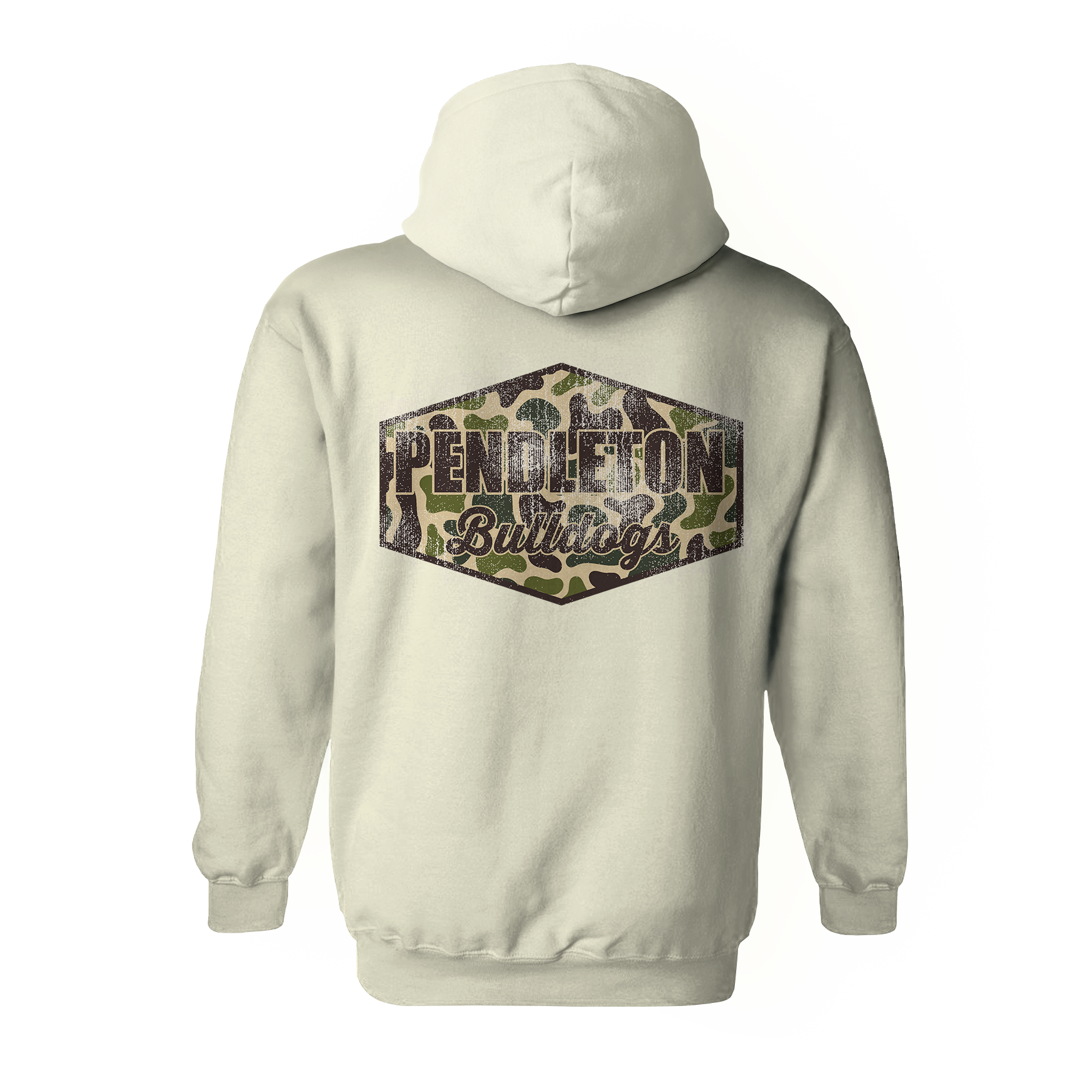 Love camo? Love the Bulldogs? Then we have the hoodie for you. This soft, natural-color hoodie features the Bulldog on the left chest and Pendleton Bulldogs in our GoodBoy Camo Design.